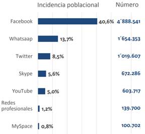 Figura 6. Uso de Redes Sociales en el Ecuador hasta diciembre de 2017 [15]