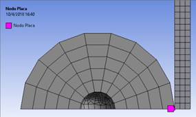 Figura 2. Selección de nodo para medición de deformación en la placa de acero.