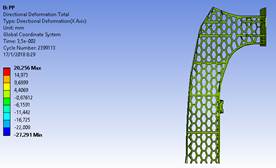 La aceleración en la zona superior de la tibia se correlaciona con daños en articulaciones durante el impacto [5]. Acorde a los datos obtenidos, el PLA es el material con mejores resultados con 3.8 g, un diseño del LBS que permita una buena disipación de energía combinando absorbedores dará mejores resultados para el cumplimiento de la normativa [4]. Un hecho similar se tiene con el Sportage R, la inclusión del UBS en el PPS, permite experimentar con una gama mayor de materiales.