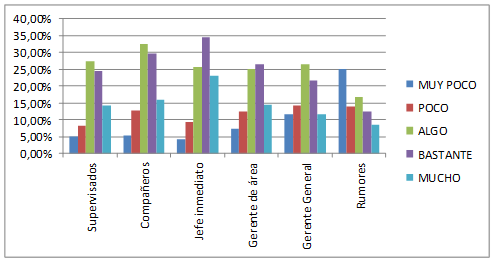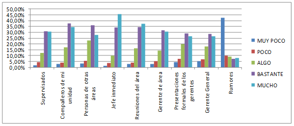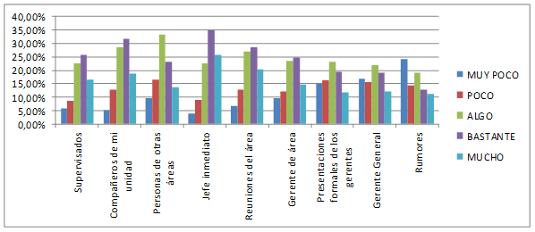 Los resultados de la investigación sobre “Fuentes de información” coinciden con Lucas [19], en relación a la alta demanda de recibir información del “jefe inmediato” y el poco beneficio de utilizar fuentes como el “rumor”.