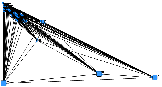 Como consecuencia de los resultados establecidos se prosiguió a realizar la modelación de una red entre las diversas áreas o disciplinas seleccionadas para evidenciar los grafos que simulan la red de la CCS. Es importante recordar que para este estudio el análisis de la red simulada se basó en los atributos cuantitativos determinados por el número de publicaciones de cada campo a partir de las diferentes variables obtenidas. El análisis cualitativo se basó en los grafos obtenidos de las diferentes visualizaciones y simulaciones emprendidas.