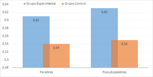 lectura de pseudopalabras, pues el grupo experimental obtuvo una media de