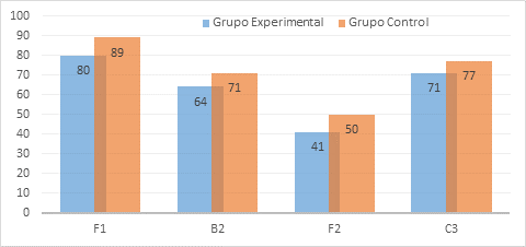 Con respecto a la primera hipótesis, no es de extrañar la semejanza entre los grupos control y experimental y los porcentajes tan altos de respuesta correcta que obtuvo el estudiantado en general, ya que la comprensión de lectura literal es una habilidad cognitiva de orden inferior [8, 9,10], en la que se identifica la información con base en los datos explícitos del texto, a partir del proceso de decodificación.