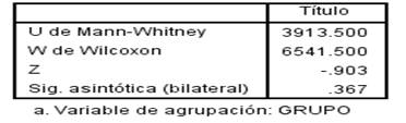 El resultado de la U de Mann-Whitney es p=0.367, es decir, mayor que 0.05 por lo que no se rechaza la Ho, pudiéndose afirmar que el nivel de reconocimiento de los títulos es igual (z=0.903, p>0.05) entre el grupo control y el grupo experimental.