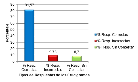 Resultados globales según el tipo de respuestas obtenidos en los crucigramas