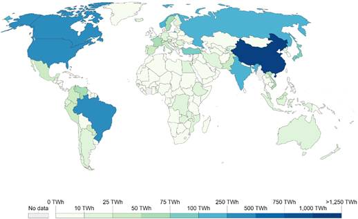 Figure 2. Hydropower generation at 2020 in TWh. [4]