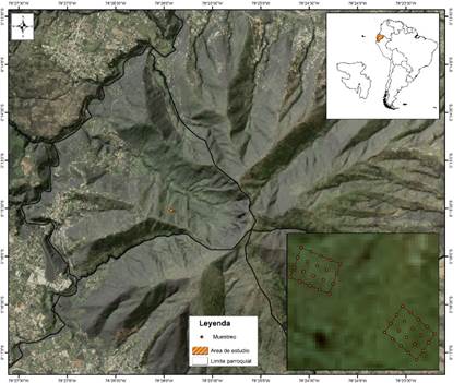 A continuación, se realizó una parcela de 20 metros de ancho por 15 metros de largo dentro del terreno donde está aplicado el tratamiento, dicha parcela la definimos como la parcela “A” o “tratamiento”, y se encuentra a una altura de 2.546,90 msnm. Sus coordenadas de ubicación son: S0 15.517 W78 25.928.