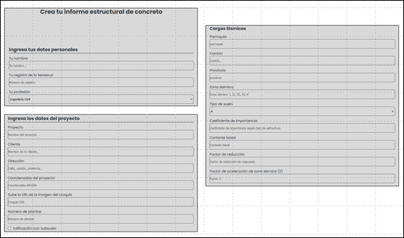 A construção informal gera incerteza no comportamento estrutural dos projetos, o que por sua vez implica em vulnerabilidade a fontes de perigo como terremotos. Uma das razões para a proliferação da informalidade na construção civil é a falta de regulamentação e controle. As instituições responsáveis pelos processos de revisão, aprovação e supervisão de projetos de construção têm recursos financeiros e humanos limitados para o desempenho de suas funções. Assim, é necessário otimizar os processos para melhorar o trabalho de regulação. Uma das etapas críticas para o controle da conformidade regulatória é a aprovação dos projetos estruturais. O objetivo deste trabalho é desenvolver uma plataforma open source que permita criar, supervisionar, aprovar e armazenar dados e informações sobre projetos estruturais. Através do uso de tecnologias frontend: HTML, CSS e JavaScript, a plataforma virtual foi configurada. Os insumos necessários para a criação dos relatórios estruturais pretendem que os relatórios gerados sejam concisos para facilitar o trabalho de revisão e armazenamento dos dados. A plataforma foi avaliada e avaliada positivamente por um grupo de profissionais da área de engenharia estrutural.