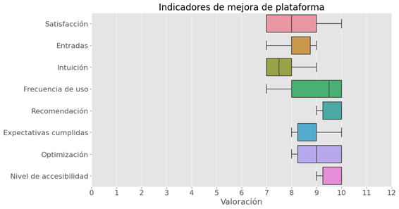 Uno de los parámetros que tuvo menor valor promedio de valoración fue la intuición uso que posee la plataforma. El denominado uso intuitivo de cualquier plataforma representa un reto para todo desarrollador de software, ya que depende de patrones situacionales almacenados a nivel cognitivo en el usuario [20]. Es decir, depende de la experiencia previa de cada persona. En este sentido, con el fin de mejorar este ítem en versiones futuras es necesario considerar aspectos como dinamismo e intersubjetividad de la plataforma como menciona [21].