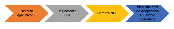 Figura 2. Evolución del marco normativo internacional y nacional para la gestión del cambio climático en Ecuador [13].