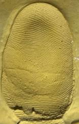 Figura 2. Huella falsa estampada en vidrio y revelada con polvo vulcano.