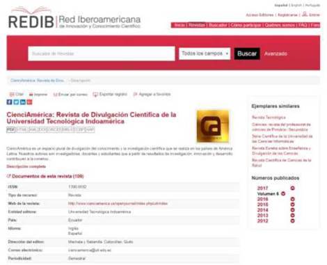 Figura 1. Perfil de la Revista CienciAmérica en la plataforma REDIB.