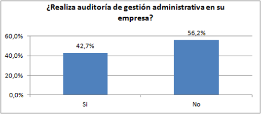 El porcentaje de las empresas que realizan auditor�as de gesti�n se asemeja al de las empresas que tambi�n efect�an controles a todas las �reas operativas de la compa��a. Como se puede observar en la figura 2, el 42,7% de las compa��as realizan este tipo de auditor�as, nivel muy inferior comparado al 56,2% de las compa��as que no la realizan.