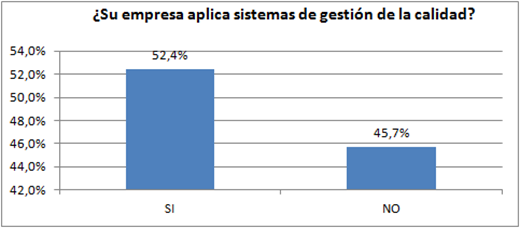 En este contexto, el 52,4% de las empresas mencionaron que se encuentran utilizando un sistema de gesti�n de la calidad (ver figura 3), y el 45,7% afirmaron no utilizar esta clase de sistemas.