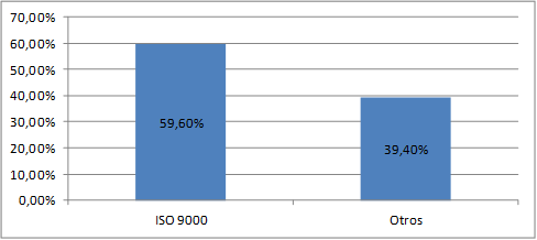 La mayor�a de las MIPYMES aplican las normas ISO 9000, el 59,60%, y el restante de ellas, el 38,40%, utilizan otros sistemas (ver figura 4).