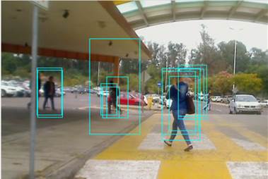 Figura 1. Generación de candidatos a peatones, en varias escalas, sobre imágenes durante el día [20].