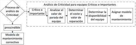 Si se tiene un equipo prescindible, se le asignará un modelo de mantenimiento correctivo [9], sin embargo, si el equipo resulta ser crítico o importante el proceso a seguir es: