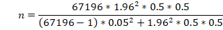 El tamaño de muestra a considerar en la presente investigación se obtuvo mediante la aplicación de la fórmula para población finita variable cualitativa, la cual se desarrolla a continuación: