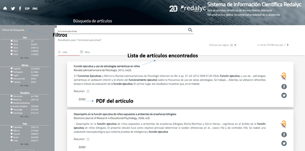 A más de la metabase Scopus, a nivel latinoamericano existen otras bases de datos que también aportan en las revisiones sistemáticas, como, por ejemplo, Scielo, Redalyc y Google Académico. En la figura 3 se puede visualizar los elementos de la búsqueda en la metabase Redalyc.