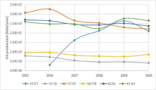 Figure 2. Oil production 2015-2020.