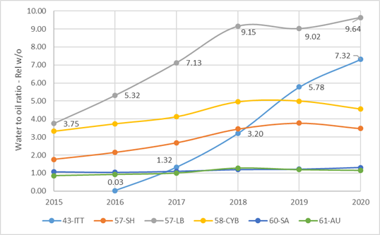 Figure 3. Evolution of raw water vs crude oil ratio - 2015-2020.